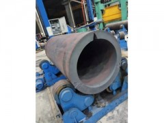 焊管流程中相关设备性能能力介绍 1.开卷机:板宽为400-1250mm, 可拆内径¢610-760mm ,外径¢1200-1800(max2000mm)mm, 材质≤X70(标准APISpec5L) 2. 夹送矫平机:钢带宽度400-1250mm;钢带厚度 4-14mm; 3.剪焊机: 钢带宽度400-1250mm,钢带厚度 4-14mm , 材质X70; 4.水平螺旋活套:进料圆直径¢12000mm, 出料圆直径¢4600mm,出料圆上带钢螺旋角5.363° ,入口速度40-180m/min,出口速度8-25m/min; 5.精矫平机: 钢带宽度430-1250mm ,钢带厚度4-14mm ,矫平辊直径 ¢180mm ,辊身长1350mm。 6.圆盘切边机: 刀盘直径¢480mm, 剪切方式拉剪; 7.成型机: 钢管外径¢127- ¢381(5〃-15〃)钢管壁厚4-14mm, 钢管长度6-14m,高频直缝连接焊辊压冷弯(W成型) 8.焊接机组: 钢管直径¢127- ¢381mm, 壁厚4-14mm. 9.定径机组: 钢管直径¢127- ¢381mm,壁厚4-14mm; 10.滚压切割: 切割范围¢127- ¢381, 壁厚4-14mm, 切割速度30m/min。 11.平头倒棱机: 加工范围¢127- ¢381, 壁厚4-14mm,处理能力2根/min 12.静水压试验机: 适应范围¢127- ¢381,最大试验压力25Mpa,处理速度1.5根/min, 13.在线超声波探伤机:适应范围,管径¢127- ¢381, 垂直线性优于3%,水平线性优于1%,动态范围≥35dB, 缺陷检出率≥95%,灵敏度余量优于35dB. 14.离线超声波探伤机:适应范围,管径¢127- ¢381,垂直线性优于3%,水平线性优于1%,动态范围 ≥35dB, 缺陷检出率≥95%,灵敏度余量优于35dB., 15.中频热处理器: 功率600KW2台, 加热温度:500℃-1200℃,频率1KHZ-2KHZ,速度6-25m/min, 加热宽度≥20mm,材质X70, 套管J55。 16.屏显式液压万能试验机: WEW-600C,采用计算机控制,适用于金属材料的拉伸弯曲,压缩(压扁),剪切等试验最大载荷600KW。 17.摆锤式冲击试验试验机: JB-300B,最大冲击能量300J。